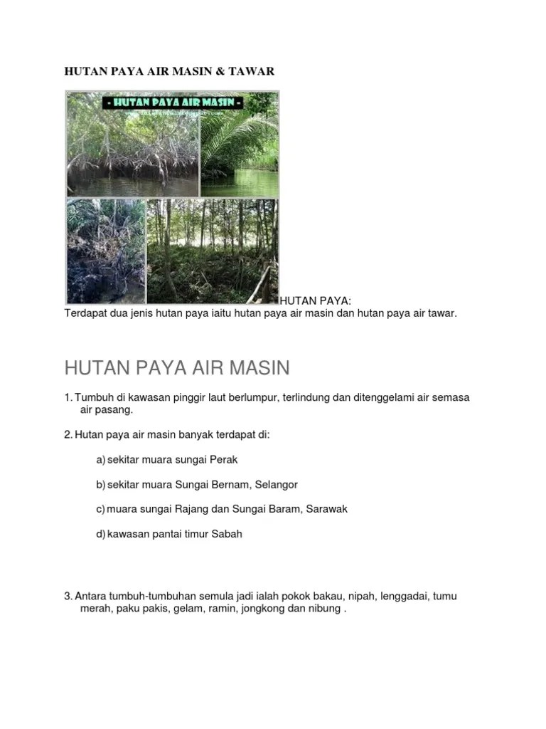 Taburan Hutan Paya Air Masin / Shanmugam Bab 12 Geografi. Terdapat dua jenis hutan paya, iaitu hutan paya air masin dan hutan . Number of times this content has. A) akar ceracak @ akar udara untuk pernafasan (menyerap .